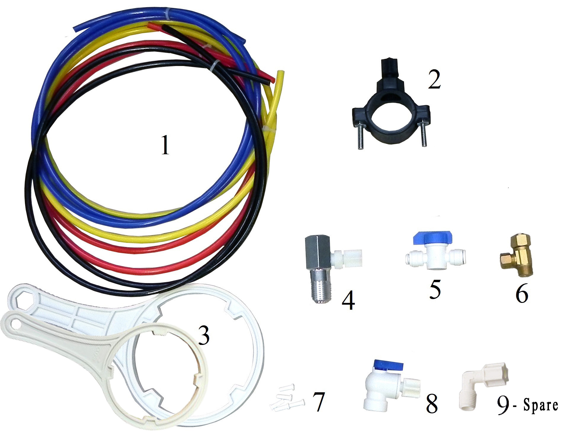 1. Color tubing, 4 sections of 5 feet tubing 1/4" OD