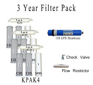 Order 3 years of RO replacment filters and maintenance kit and enjoy big discount with this value pack. For Model: K-5150P Package includes: three sets of KPAK-4, one M-150 membrane, and one MKP maintenance kit.