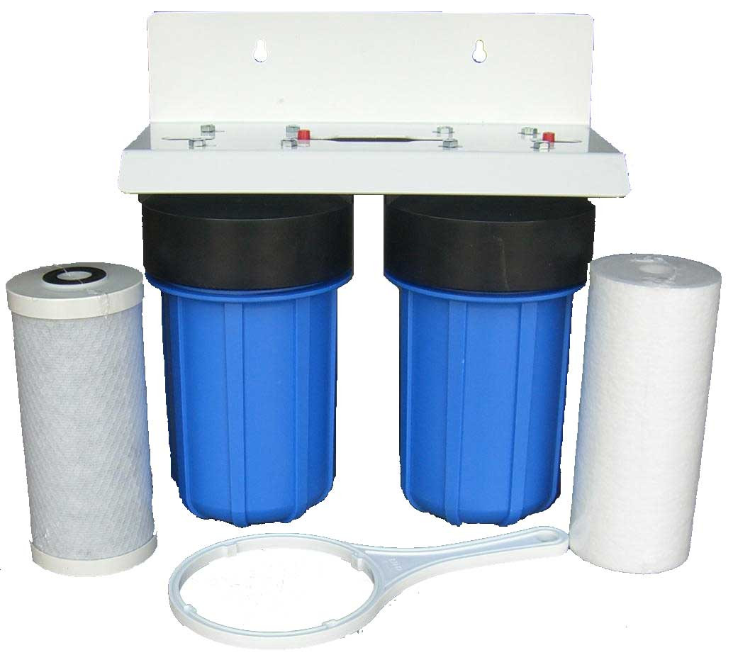 High flow 2-stage sediment and carbon filtration system, 4.25 in. x10 in. filters, 3/4 inch inlet